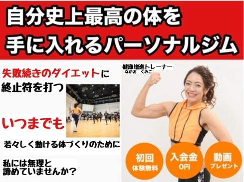 開運健康増進パーソナルトレーナーのなかおくみこです。